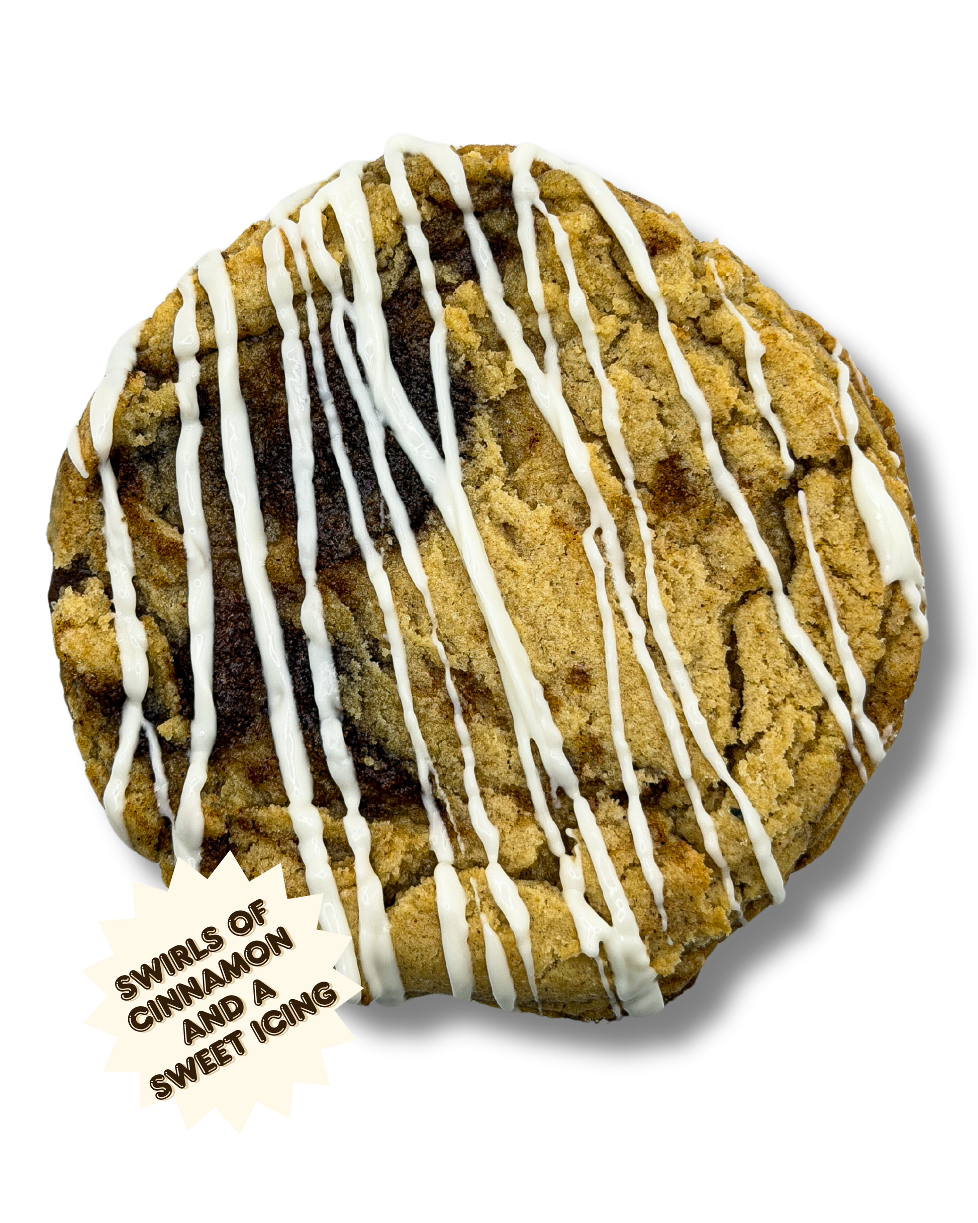 Soft and pillowy cookie with brown sugar cinnamon throughout, finished with a light vanilla glaze. All the comfort of a fresh cinnamon roll, baked into a cookie.